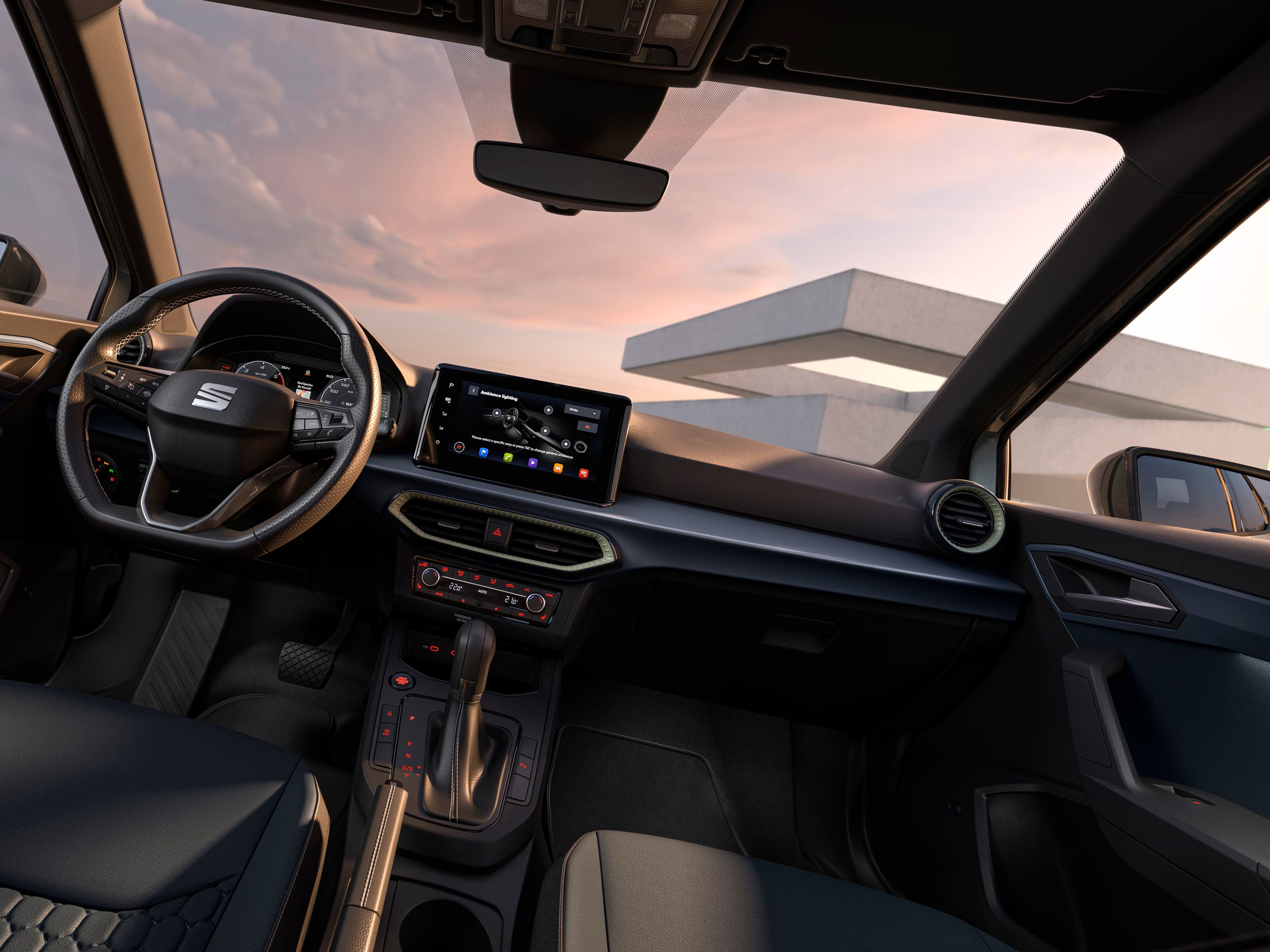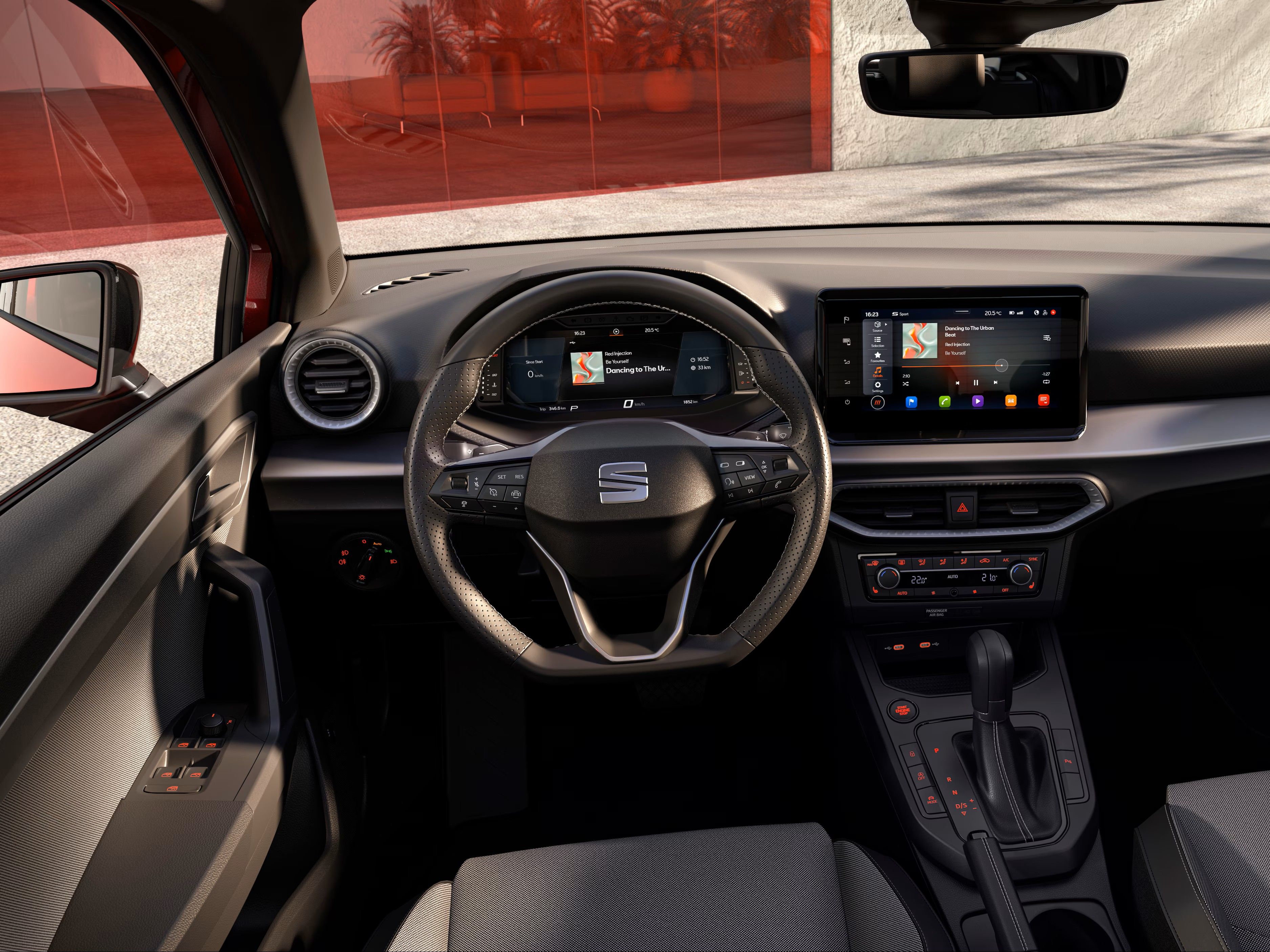 Az utastérben az új Ibiza és Arona prémiumabb hangulatot teremt. Új dombornyomott textilek, finomabb anyagok, sötétebb tetőkárpit és perforált bőrrel bevont kormány került az autókba, valamint a visszafogott, semleges színű díszítések elegáns és letisztult összhatást keltenek. Az FR felszereltség mostantól sportos kagylóüléseket tartalmaz, amelyek egyszerre fokozzák a kényelmet és a dinamikus vezetési élményt.